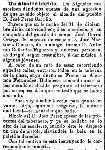 3 de enero de 1889. El alcalde de Nigüelas D. José Pérez
