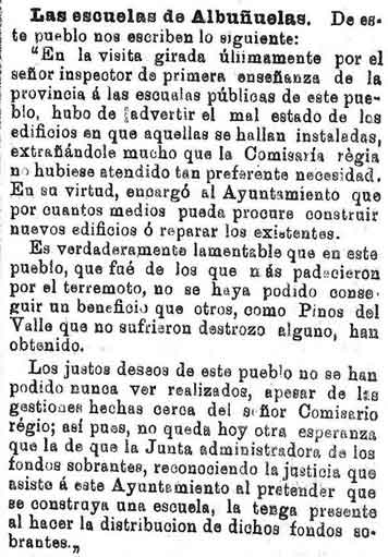 8 de enero de 1889. Las escuelas de Albuñuelas se encuentran