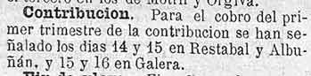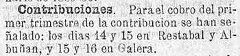 13 de octubre de 1889. Contribución de Restábal y Albuñuelas