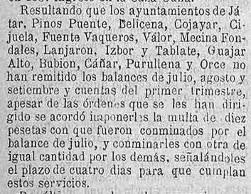 26 de octubre de 1889. Multados Lanjarón e Ízbor y Tablate