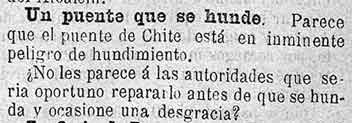 27 de octubre de 1889. El puente de Chite se hunde