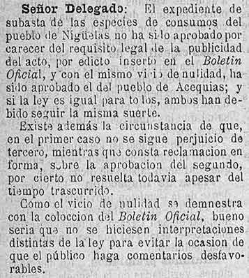 27 de octubre de 1889. Problemas en los consumos de Nigüelas