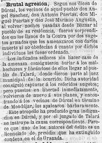 3 de octubre de 1889. Brutal agresión a unos vecinos de