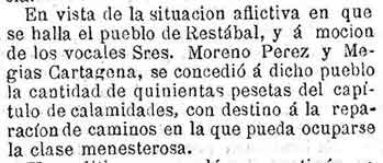 14 de septiembre de 1889. Dinero para reparar caminos en