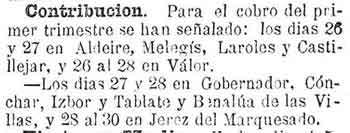 25 de septiembre de 1889. Contribución en Melegís e, Ízbor y