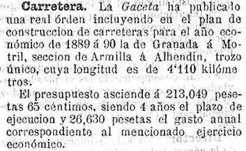 6 de septiembre de 1889. Carretera Granada Motril. Trozo