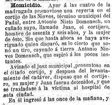 7 de septiembre de 1889. Homicidio en el Cortijo de las