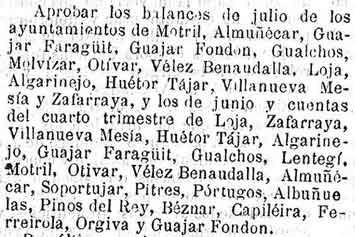 9 de septiembre de 1889. Balances de los ayuntamientos de