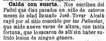 24 de abril de 1890. Un niño de Padul cae desde nueve varas