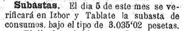 4 de abril de 1890. Consumos de Ízbor y Tablate