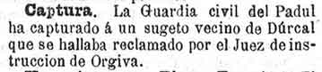 6 de abril de 1890. Detención de un vecino de Dúrcal