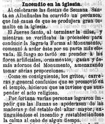 7 de abril de 1890. Incendio en la iglesia de Albuñuelas