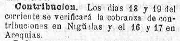 16 de diciembre de 1890. Contribución de Nigüelas y Acequias