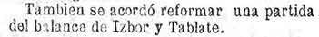 18 de diciembre de 1890. Balance de Ízbor y Tablate