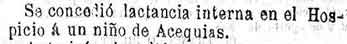 20 de diciembre de 1890. Lactancia a nińo de Acequias