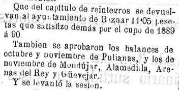 26 de diciembre de 1890. Balances de Béznar y Mondújar