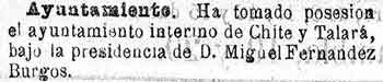 9 de diciembre de 1890. Ayuntamiento de Chite y Talará,