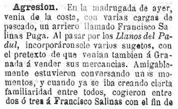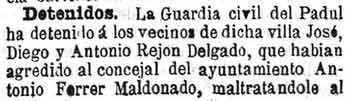 1 de enero de 1890. Detención en Padul por agredir a un