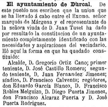 la viuda de Tuset ha constituido el ayuntamiento