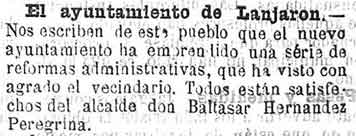 23 de enero de 1890. Constituido el ayuntamiento de Lanjarón
