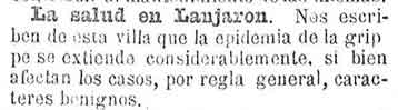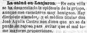 31 de enero de 1890. Muy extendida la gripe en Lanjarón