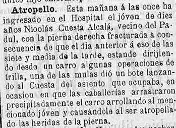1 de julio de 1890. Herido en el Padul por su carro
