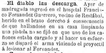 21 de julio de 1890. En Restábal se hiere con una pistola al