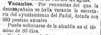 5 de julio de 1890. Secretaría del Padul