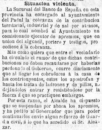 14 de octubre de 1890. Situación violenta en el Padul por el