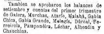 17 de octubre de 1890. Balances de Murchas, Melegís y Dúrcal
