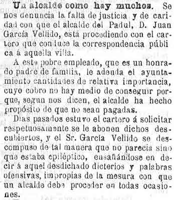 17 de octubre de 1890. El alcalde de Padul no paga al cartero