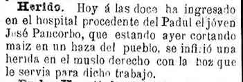 18 de octubre de 1890. Vecino de Padul se hace una herida con