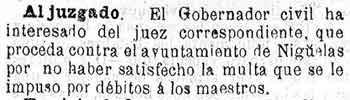 19 de octubre de 1890. Nigüelas no paga a los maestros
