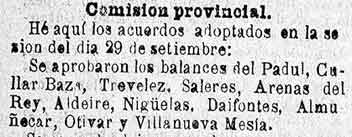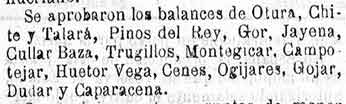 2 de octubre de 1890. Balances de Padul y Nigüelas
