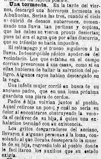 28 de octubre de 1890. Muerta en una tormenta una vecina de