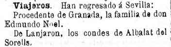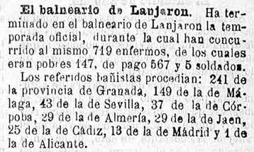 4 de octubre de 1890. Finaliza la temporada en Lanjarón
