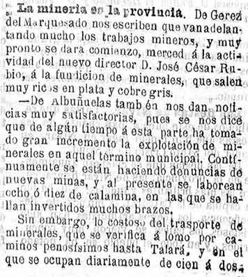 Incremento de minas en Albuñuelas. Hay ocho o diez de calamina. El mineral se