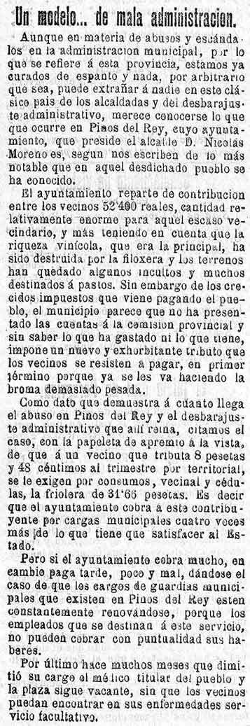 alcalde Nicolás Moreno de Pinos del Rey, un ejemplo de mala gestión. Las viñas