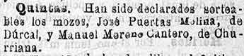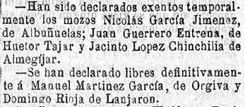 16 de abril de 1891. Quintos de Albuñuelas y Lanjarón
