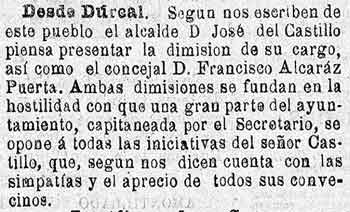 18 de abril de 1891. El alcalde de Dúrcal Don José del