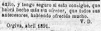 25 de abril de 1891. Ecos de Nigüelas: La pelea de un