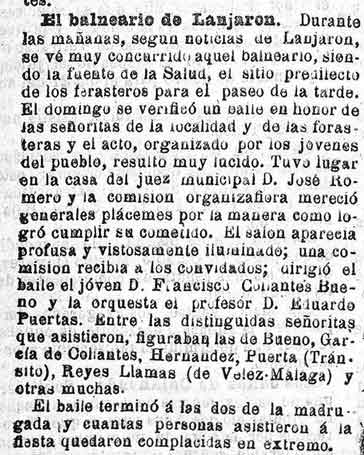 12 de julio de 1891. Temporada de veraneo en Lanjarón