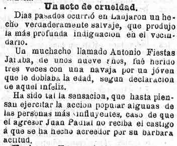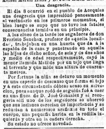 15 de julio de 1891. Una niña de Acequias se cae por el