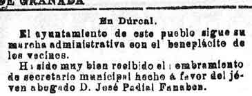 23 de julio de 1891. Se elige secretario de Dúrcal