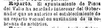 24 de julio de 1891. Pinos del Valle solicita nuevo reparto