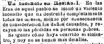 30 de julio de 1891. Un incendio en las eras de Restábal