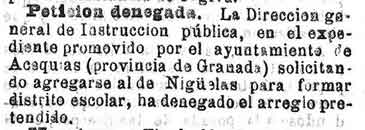 31 de julio de 1891. Denegación de unir en distrito escolar