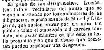 3 de julio de 1891. Queja por la velocidad a la que entran en