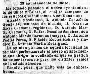 4 de julio de 1891. Se constituye el ayuntamiento de Chite y