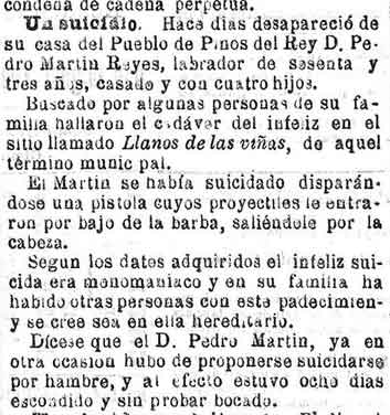 6 de julio de 1891. Se suicida con una pistola un vecino de